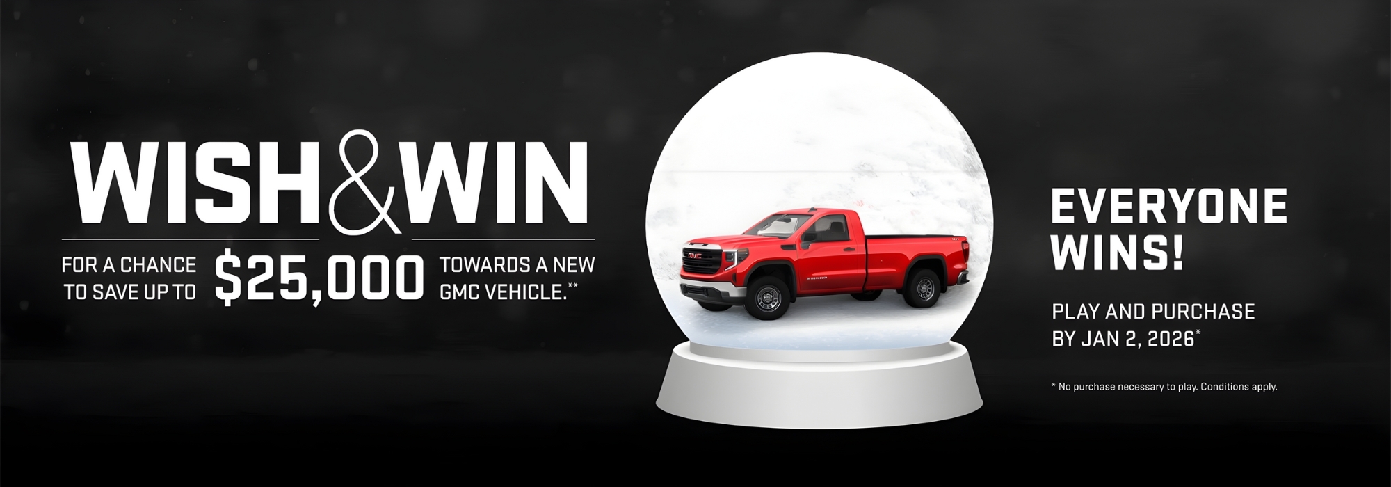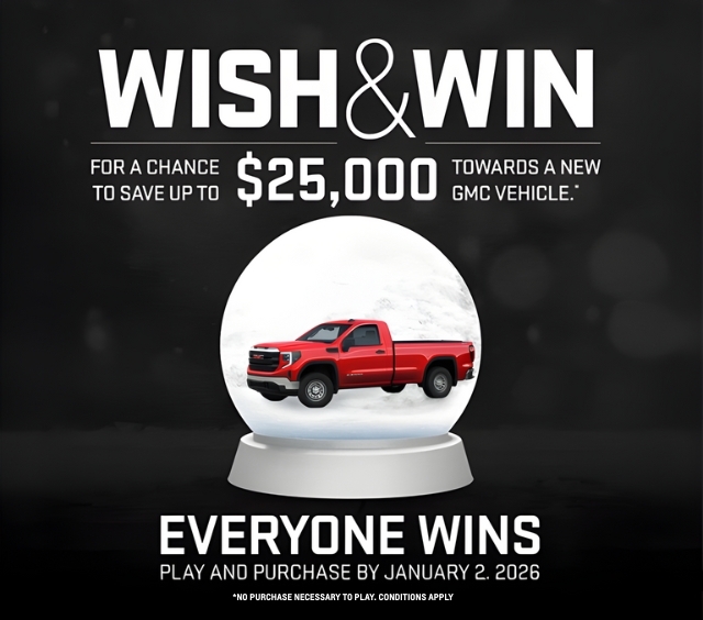 When you take part in Wish & Win, you’ll have the chance to save up to $25,000 toward a brand-new Chevrolet, Buick, or GMC